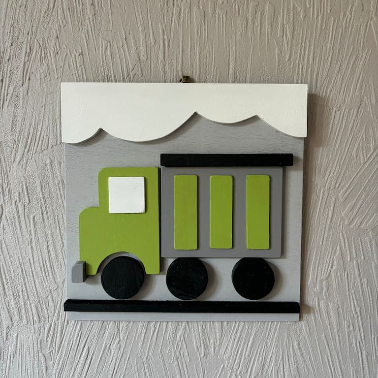 Le joli cadre décoratif camion benne que je vous propose est une création unique. Il est original et écologique.