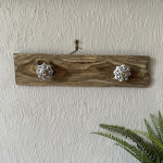 En ce qui concerne les portes manteaux, ils ont été conçus par nos soins. Pour commencer, le bois à été poncé pour lui donné un coté ancien.