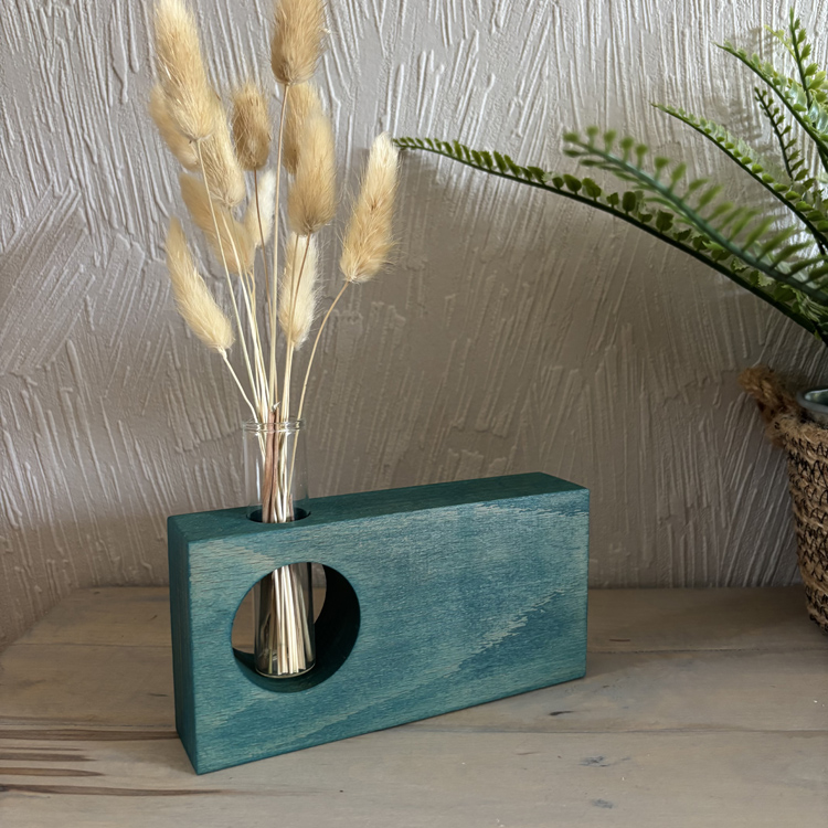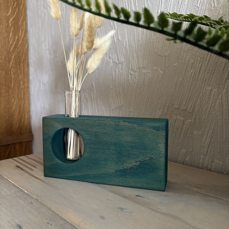 Soliflore en bois de hêtre coloré au design minimaliste. Parfait pour accueillir des fleurs séchées. Idéal pour une décoration naturelle et moderne.